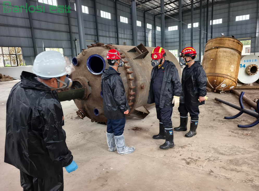 面對(duì)挑戰(zhàn),巴洛仕集團(tuán)項(xiàng)目團(tuán)隊(duì)在進(jìn)場(chǎng)前即開展了全面的風(fēng)險(xiǎn)評(píng)估與現(xiàn)場(chǎng)踏勘。技術(shù)人員針對(duì)每個(gè)油罐的規(guī)格、使用年限、殘留物性質(zhì)進(jìn)行方案設(shè)計(jì)、在拆除作業(yè)中,團(tuán)隊(duì)采用了“清洗置換—?dú)怏w檢測(cè)—惰性保護(hù)—機(jī)械切割”的標(biāo)準(zhǔn)化工序,確保整個(gè)作業(yè)過程無明火、無泄漏、無二次污染。所有進(jìn)入受限空間的作業(yè)人員均持證上崗,并配備五合一氣體檢測(cè)儀及正壓式空氣呼吸器,現(xiàn)場(chǎng)安全管理人員全程旁站監(jiān)督,實(shí)現(xiàn)了HSE目標(biāo)。